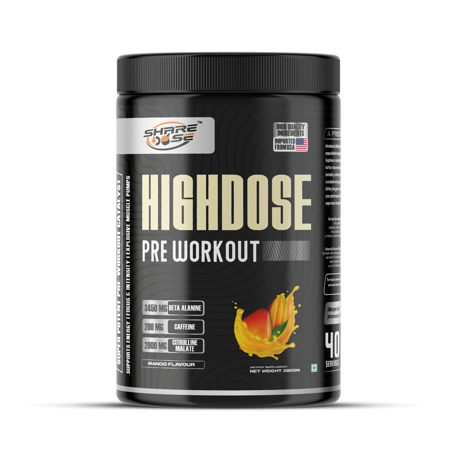 HIGHDOSE Pre Workout – Ultra-Strong Energy & Performance Formula (280g / 40 Servings)