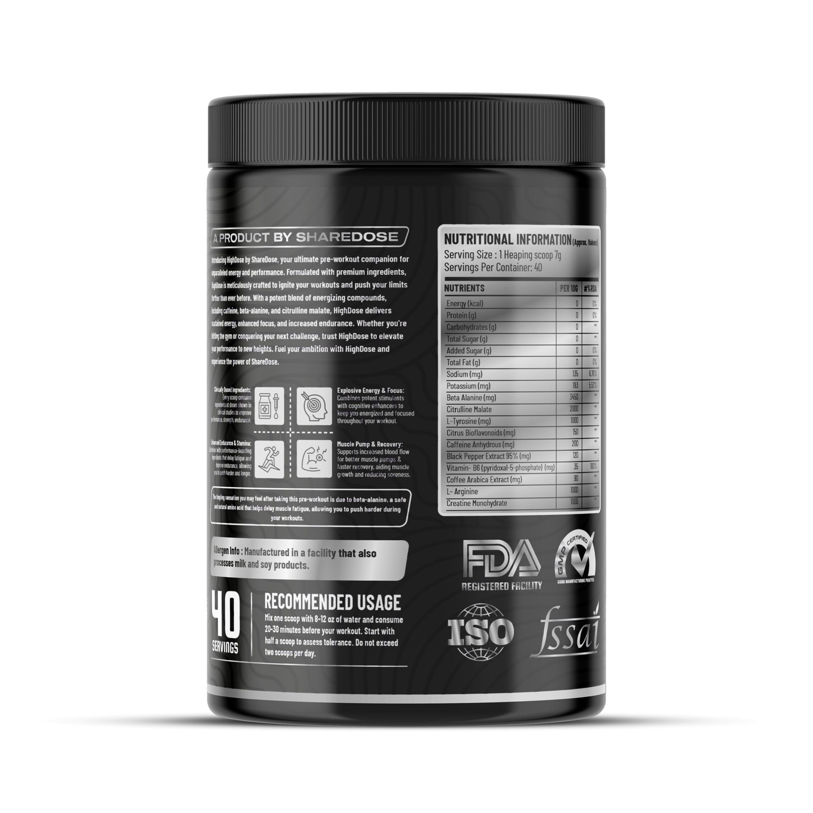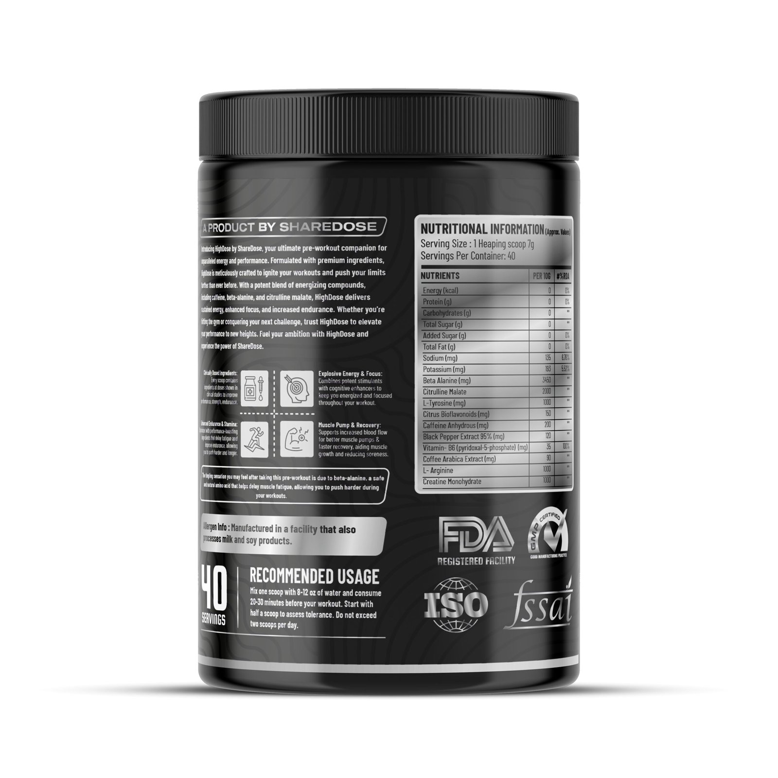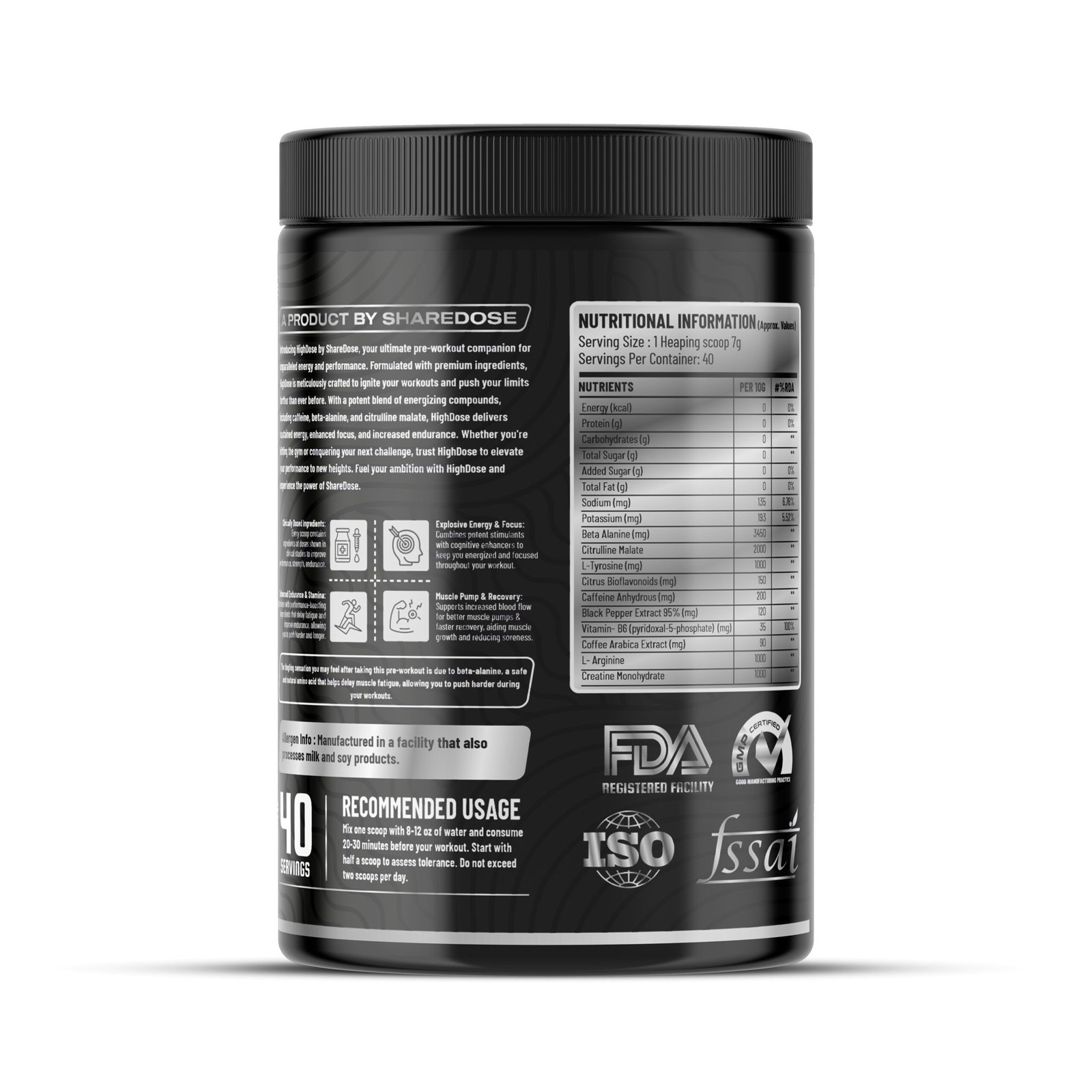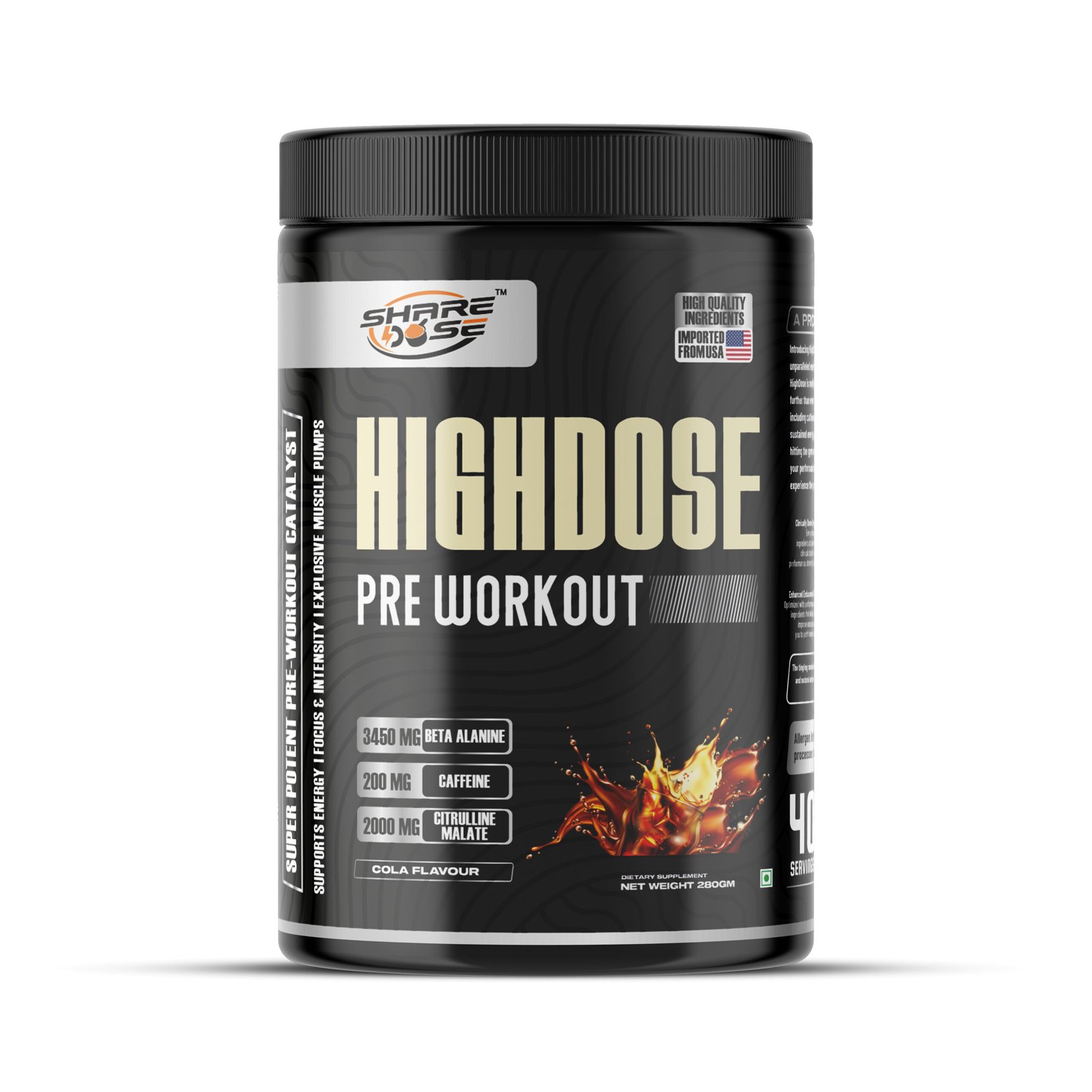 HIGHDOSE Pre Workout is engineered for athletes and serious lifters who want extreme performance, amplified energy, and unmatched muscle pumps. With a potent blend of Beta Alanine, Citrulline Malate, L-Arginine, Taurine, and microencapsulated caffeine, this formula helps you push your body beyond limits.