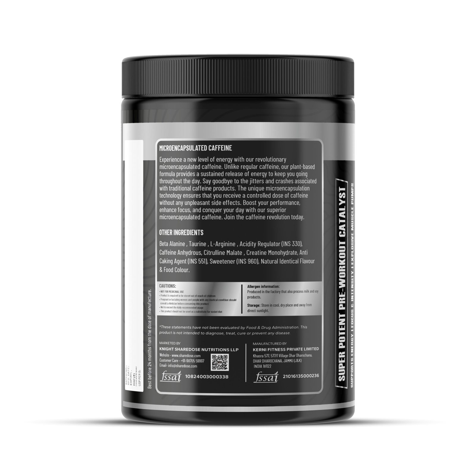 - Caffeine Anhydrous: 200 mg